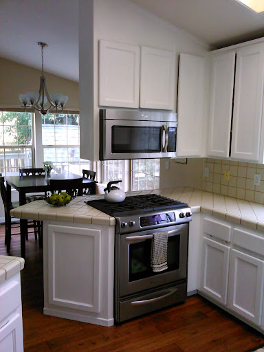Oak Cabinets Painted White With Km Epoxy Paint Kitchen Aid Convection Slide In Range And 400cfm Microwave Convection Co Oak Cabinets Kitchen Kitchen Cabinets